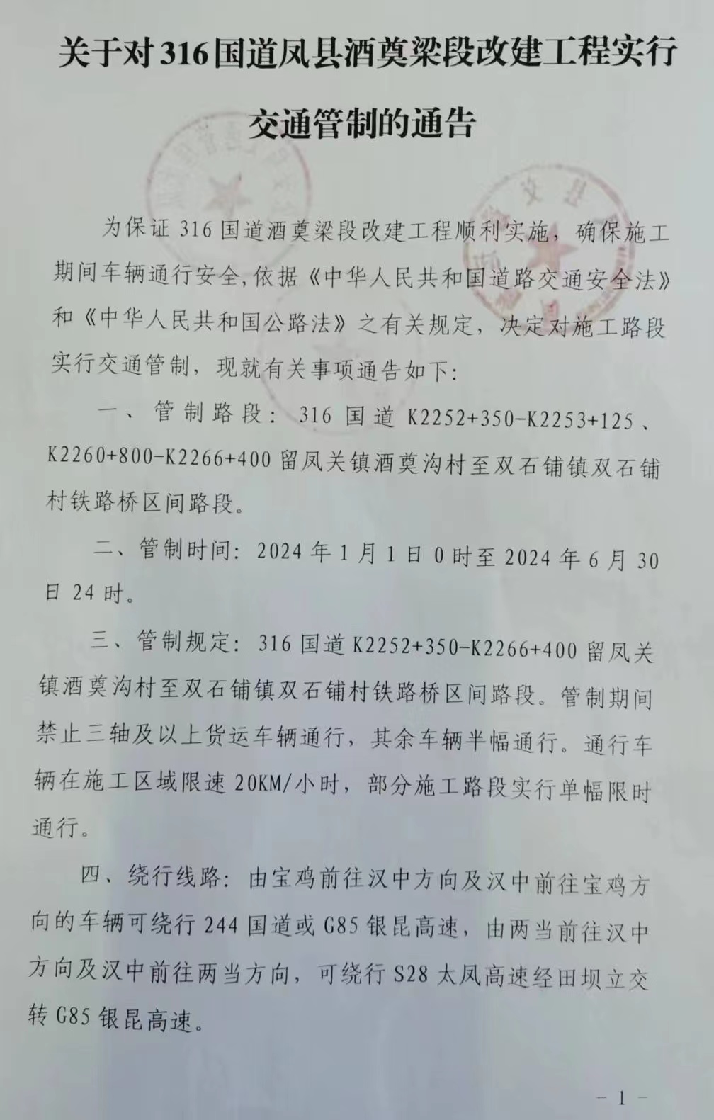 关于G316长同线留凤关镇酒奠沟村至双石铺镇双石铺村区间路段通行路况信息
