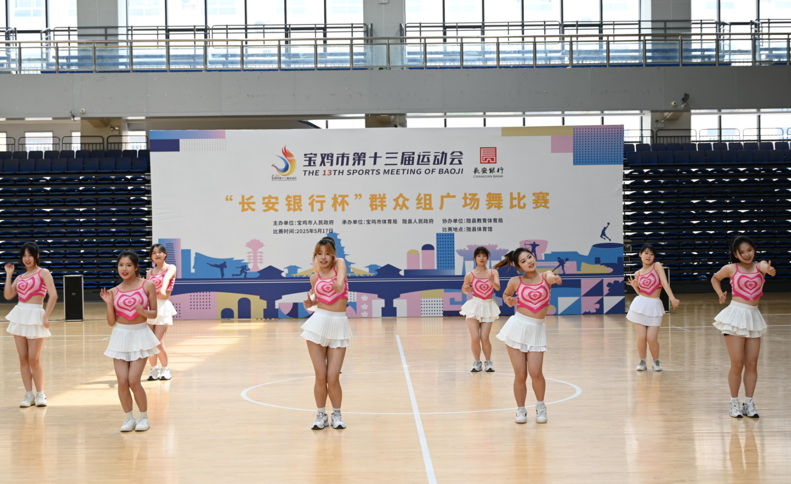 5月17日,宝鸡市第十三届运动会“长安银行杯”群众组广场舞比赛在陇县体育馆拉开帷幕,来自全市的27支代表队同台竞技。市交通运输局代表队以精湛的舞技、饱满的热情展现了交通风采,并荣获优胜奖。