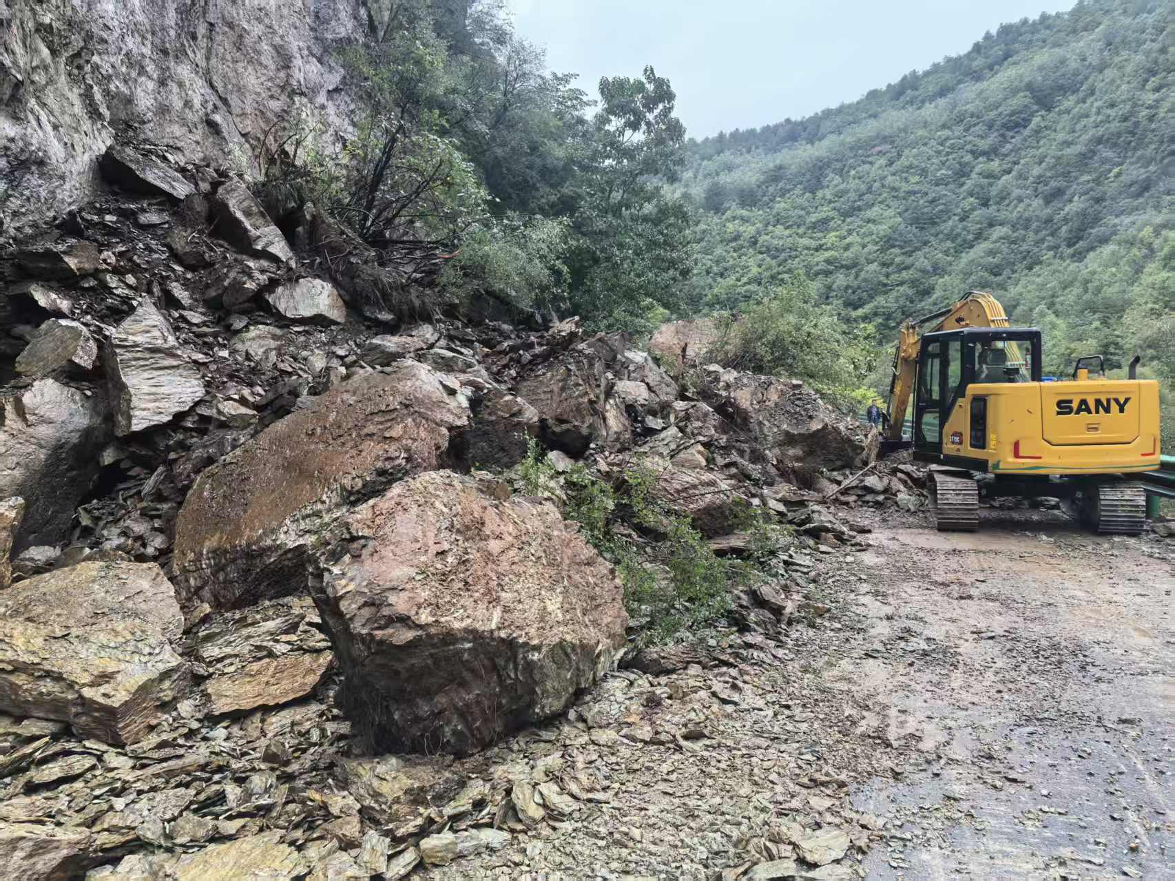 险情发生后,太白公路段立即启动汛期应急预案,抢险突击队5分钟内集结到位,投入装载机1台、挖掘机1台、自卸车1辆及作业人员10余名,在滑坡区域周边设置警示标识。同时,已同步对接交警部门实施交通管制,在滑坡点两端设置分流卡口,禁止过往车辆进入危险区域。
