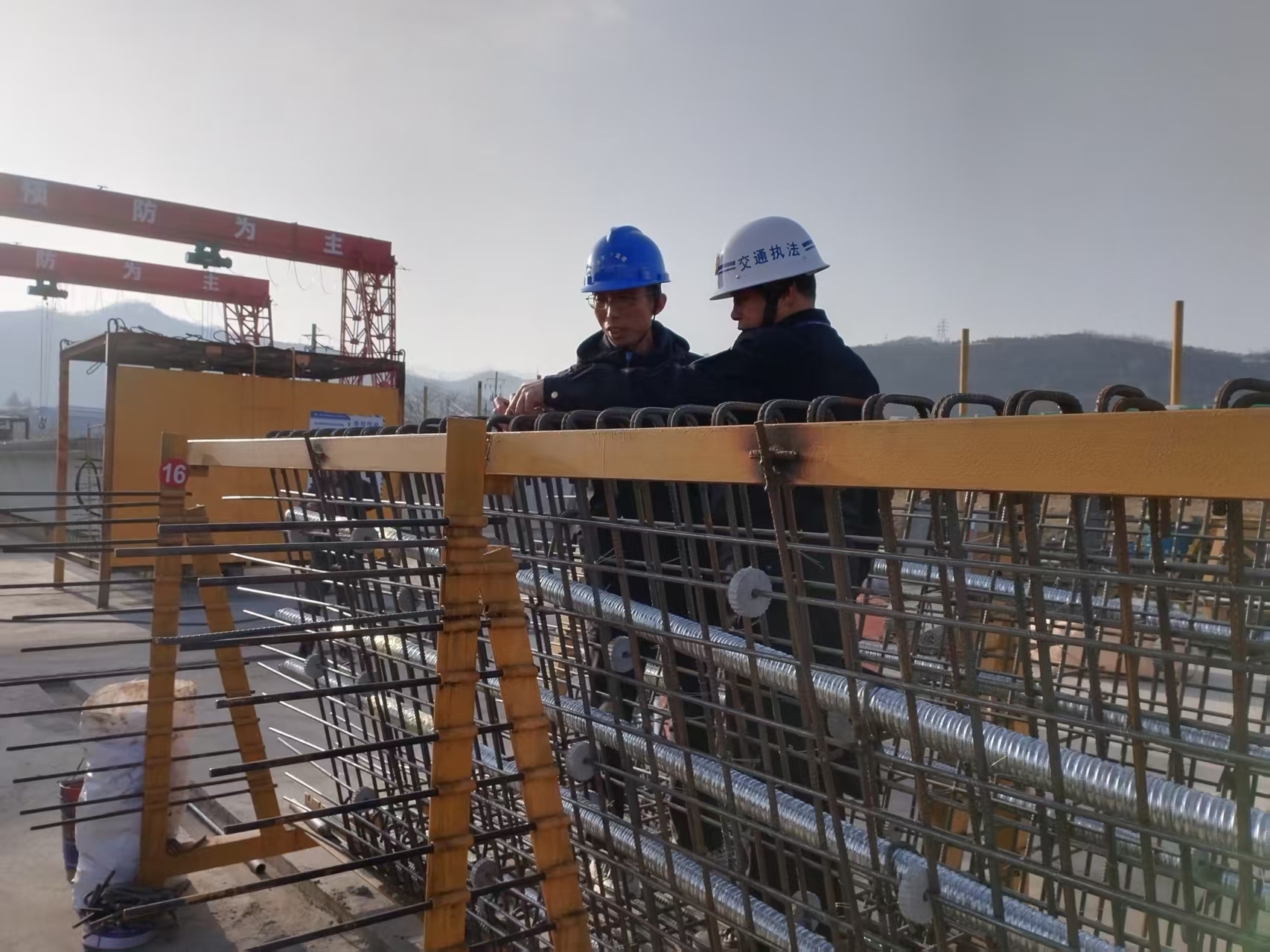 一、聚焦危大工程,严查关键环节。执法人员重点检查了项目危大工程的安全技术交底落实情况,确保交底有针对性、可操作性。同时在箱梁加工现场对特种作业人员的持证上岗情况进行了逐一核对,并仔细检查了其安全防护用品配备与使用情况,严防无证上岗和防护不到位等行为。