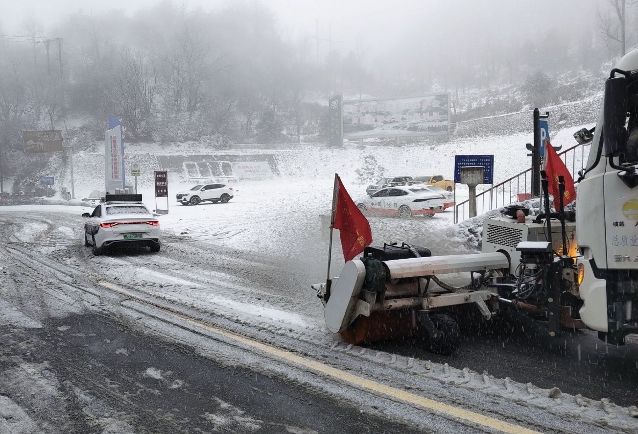 太白公路管理段提前制定应急预案,备足应急资源,科学划分作业区域,统筹调度人力。针对积雪结冰严重的秦岭梁、五里坡等关键点位,采取“三机联动、分路推进”的作业模式,将除雪铲、除雪滚刷与融雪剂抛洒机有机组合,通过除雪铲破冰除厚雪、除雪滚刷清理残余积雪,最后以融雪剂防止路面二次结冰,形成“破冰-扫雪-融雪”科学高效的作业流程,优先清理主行车道,逐步向应急车道和路肩延伸,确保除雪作业无死角、无盲区。累计出动机械设备8台,人员20人次,抛洒融雪剂6吨。(太白公路管理段 贾艳艳)