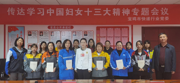 10月31日,市快递行业党委召开传达学习中国妇女十三大精神专题会议。会议以线上、线下相结合的方式进行,中国妇女十三大代表、宝鸡市快递行业党委副书记、宝鸡市邮政业安全中心党支部书记、主任赵冬霞传达会议精神。宝鸡市快递行业女执委、女职工代表参加了会议。