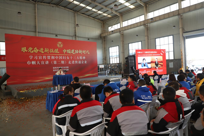 宝鸡市快递行业妇联执委、各快递企业妇委会主任、中国邮政集团宝鸡分公司、顺丰速运宝鸡分公司、宝鸡韵达、宝鸡中通等11家快递企业负责人、女职工代表共计200余人现场参加宣讲活动。(赵冬霞 刘静)