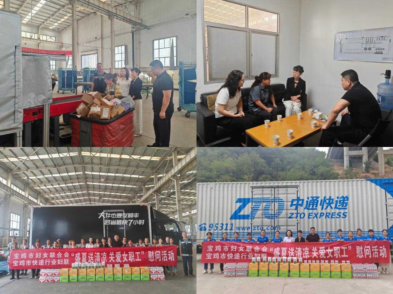 炎炎夏日送清凉、滴滴关怀润人心。8月7日,宝鸡市妇联、宝鸡市快递行业妇联前往顺丰宝鸡分公司、渭滨中通开展“盛夏送清凉 关爱女职工”慰问活动,为坚守在一线的女职工们现场送上清凉饮品、藿香正气水、绿豆等防暑物资,带去“娘家人”的关心关爱。宝鸡市妇联党组书记、主席、二级巡视员樊瑞君,宝鸡市交通运输局党组成员、副局长、市邮政管理局党组书记、局长、市快递行业党委书记侯金利、宝鸡市快递行业妇联负责同志参加活动。