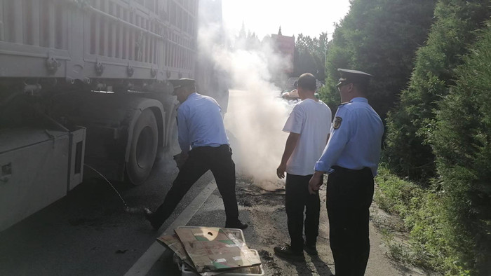 小货车自燃 交通执法人员及时救火