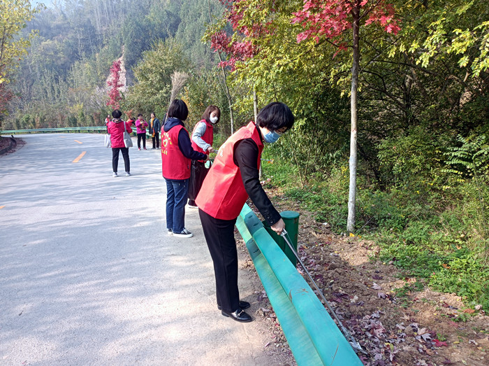 十多公里长的红枫大道蜿蜒起伏、层林尽染。大家身着志愿者标志服,拿着垃圾夹、扫帚、垃圾袋等工具,清理路面路边的杂物垃圾,为营造“最美农村路”的靓丽风景奉献力量。