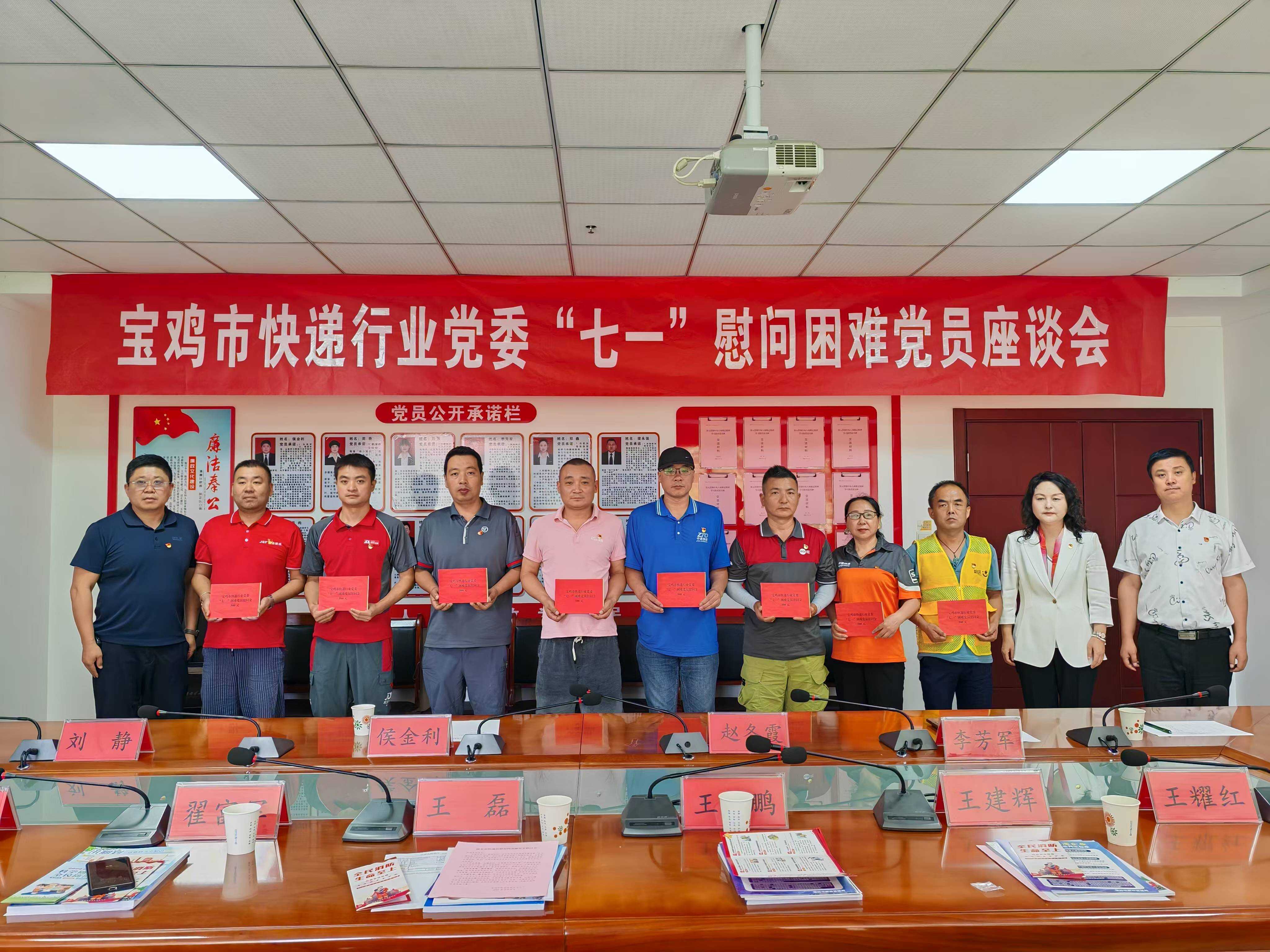 在第104个“七一”建党节来临之际,为充分体现党组织对困难党员的深切关怀,6月27日上午,宝鸡市快递行业党委组织召开“七一”慰问困难党员座谈会。市交通运输局党组成员、副局长、市邮政管理局局长侯金利,市邮政业安全中心负责同志与各快递企业困难党员齐聚一堂,共话初心使命,传递组织温暖。