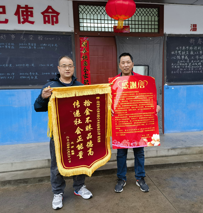 2月21日下午,市民张先生来到市众信出租车公司,将一面写有“拾金不昧品德高,传递社会正能量”的大红锦旗和一封感谢信送到出租车驾驶员郑艳辉手中,以表达他和妻子对拾金不昧,品德高尚的好“的哥”郑师傅的感谢。