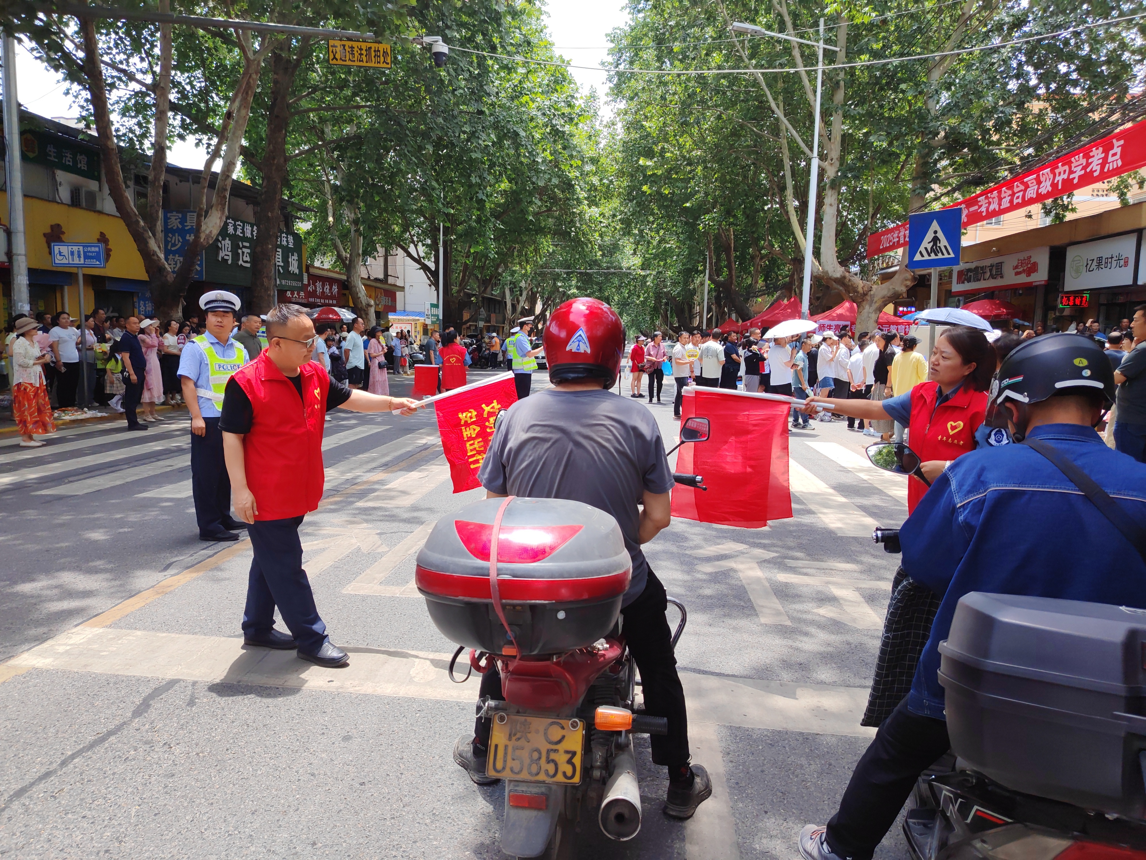还有一部分志愿者身着红马甲联合金台交警大队中山路中队,在人流量较大的考场附近路口开展文明交通劝导活动,协助交警维护交通秩序,共同为考生创造和谐安全的考试环境。(王 侠)