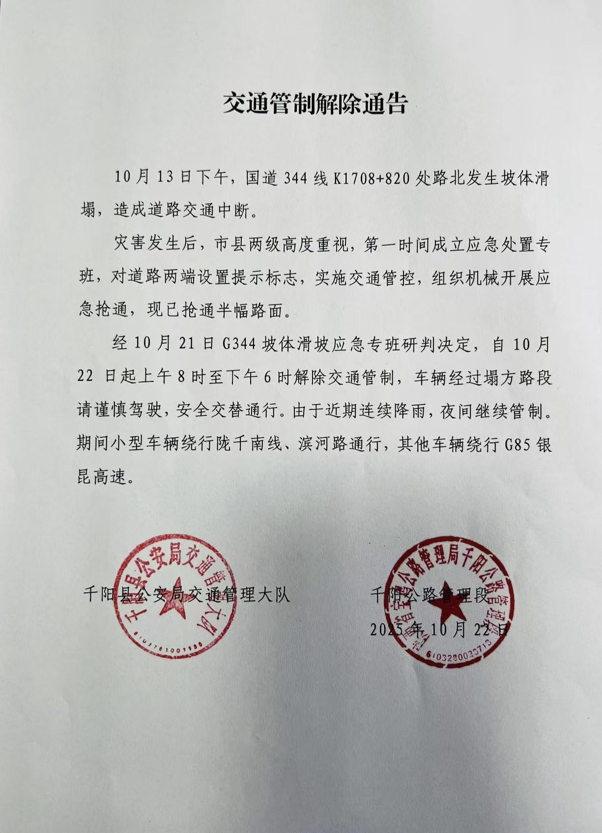 G344 K1708+820部分时段恢复通行