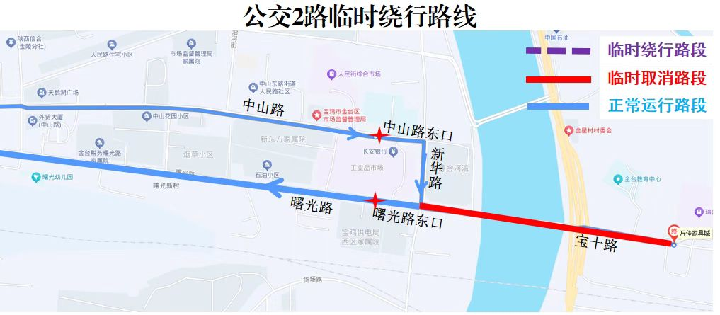 公交线路具体绕行时间以道路实际施工时间为准,待施工结束,具备通行条件后将即时恢复原线运行。广大乘客可下载宝鸡行APP、关注宝鸡公交微信公众号或拨打交通服务热线12328及时掌握最新线路运行信息。